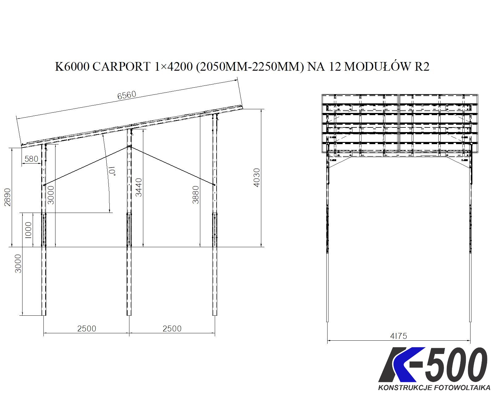 K6000 CARPORT 1X4200 (2050-2250) na 12 Modułów R2