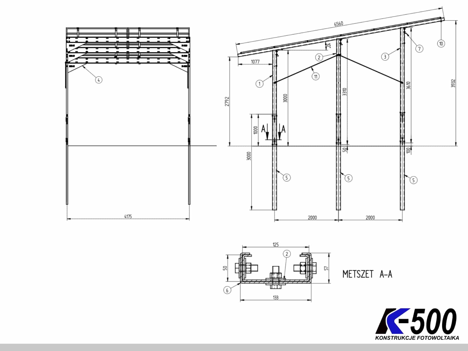 Konstrukcje K504, K505, K506 oraz wszystkie Carporty wysyłane są spedycją. Firma K500 nie zapewnia rozładunku konstrukcji. Rozładunek zapewnia odbiorca pod wskazanym adresem dostawy. W innym przypadku prosimy o kontakt z biurem K500 w celu ustalenia transportu z HDS - usługa dodatkowo płatna, podlega indywidualnej wycenie.