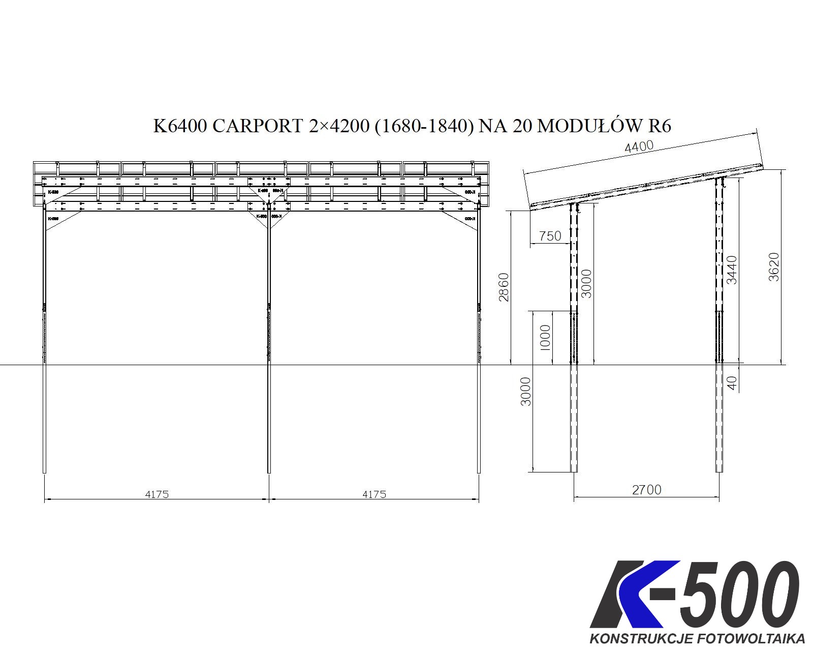 K6400 CARPORT 2×4200 (1680-1840) na 20 modułów R6