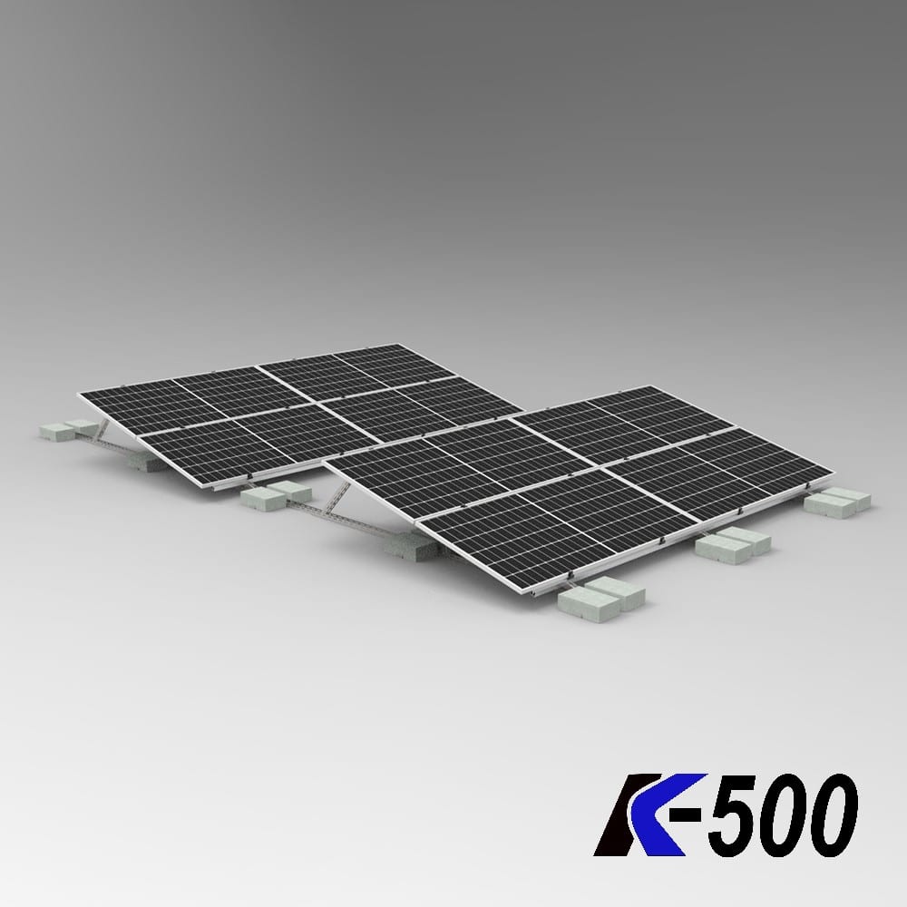 Kupując konstrukcje z K500 otrzymujesz zestaw wszystkich elementów montażowych niezbędnych do położenia określonej liczby konkretnych modułów fotowoltaicznych