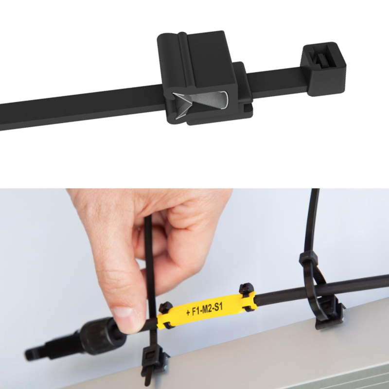 Dwuelementowy komponent składający się z opaski zaciskowej oraz uchwytu (Edge clip) do mocowania na krawędziach modułów . Samoblokujący uchwyt to idealne rozwiązanie dla aplikacji, gdzie nie ma możliwości wykonania otworu montażowego lub z uwagi na wysoką temperaturę, nie jest możliwe zastosowanie elementu samoprzylepnego. Uchwyt jest szeroko stosowany do mocowania przewodów, kabli, rur oraz węży m.in. w branży automotive, energetycznej oraz spożywczej. Doskonale nadaje się do spinania przewodów przy panelach fotowoltaicznych, szafach sterowniczych, maszynach oraz wszędzie tam, gdzie nie można zastosować klasycznych rozwiązań.